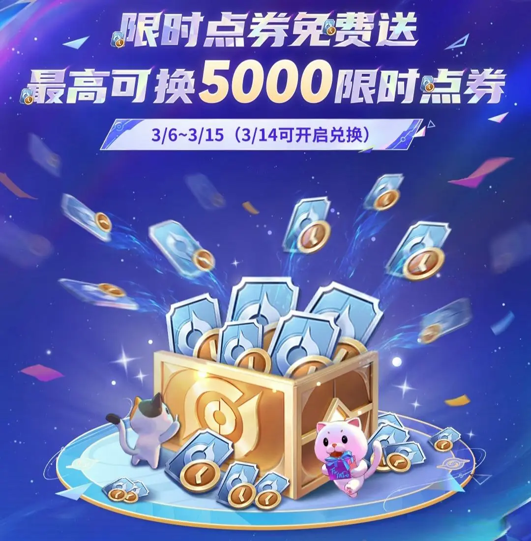 最初海外服6号就会迎来限时点券步履,限时点券商城步履可以说是当今王者荣耀最佳的步履之一了,而海外服的限时点券步履不仅开启次数好多,每一期的限时点券数目亦然超越高的,这次步履就可以赢得5000限时点券,国服十周年庆才只好三千限时点券。