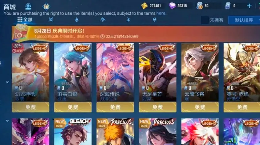 况兼海外服的限时点券商城可以兑换的据说皮肤有好多,其中不少皆是截至据说皮肤,比如后羿——无穷星芒、孙悟空——零号-炽焰、暃——朽木白哉、宫本武藏——黑崎一护、亚连——落皑皑狼等皮肤,皮肤的建模和手段殊效皆是超越可以的系列。