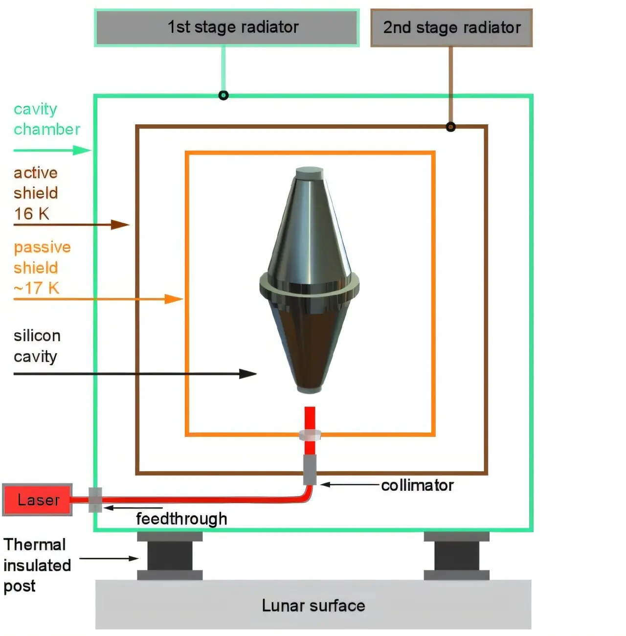 月球南北极永久暗影区的极点环境,适值成为这类精密开拓的“理思实验室”。这里常年不见阳光,温度低至零下253摄氏度,近乎真空的环境也扬弃了大气搅扰。更重要的是,通过被迫冷却系统将硅腔看护在特定温度后,硅的热推广扫数趋近于零,激光反射旅途的安逸性会呈数目级普及。