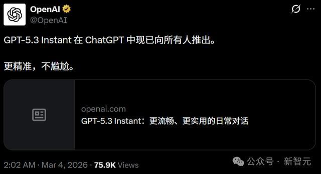 就在刚刚,GPT-5.3 Instant炸裂登场,全面击碎了「AI爹味」,幻觉率爆砍27%。